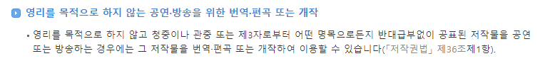 상업적 용도의 사용에는 아래와 같은 행위를 포함합니다: